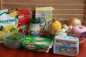 Ингредиенты для «Сырный торт с ветчиной и грибами»: