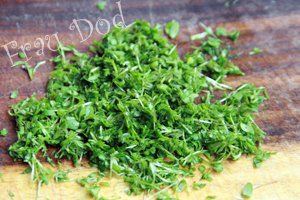 Кресс-салат вымыть, высушить, измельчить.