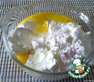 Добавить яйца. В некоторых рецептах рекомендуется сначала взбить белки в крепкую пену, которые добавить в готовую творожную массу. Мой вам совет - не тратьте зря время. Когда достанете творожник из духовки-он все равно опадет.