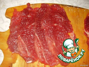 кусочки мяса отбить, присыпать солью и перцем
