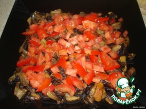 Уложить на блюдо, сверху мелко порезанный помидор, потертое яблоко и яйца, пропитать сметаной, ножом сделать квадратики, присыпать горчицей, создавая вид поля для игры.