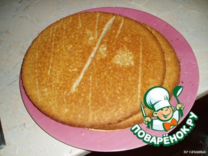 Выпекать при 180 градусах 35 минут. Когда корж испечется, выкладываем его и печем точно такой же 2 корж.