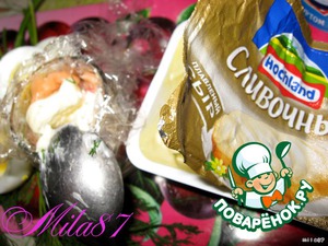 Закрываем ломтиком яйца, плотно закрываем пленкой и в холод минут на 15.