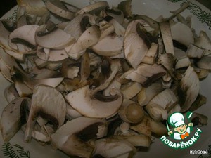 Грибы режем не очень мелко, обжариваем, выкладываем в салатник.