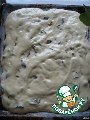 Далее на подготовленный противень (обильно смазанный маслом и посыпанный мукой) выкладываем наше тесто и в разогретую духовку минут на 30-40 (180 градусов)