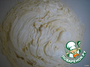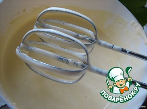Продолжая взбивать, постепенно вводим сгущенное молоко.