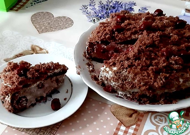 - Вишня (без косточек Шоколадный бисквит 1/2 стакана) — 1/2 стак.