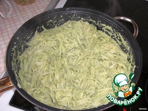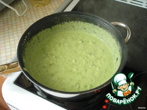 Приготовить соус из 4-х ингредиентов. Зелень с половиной сливок, солью и белым перцем