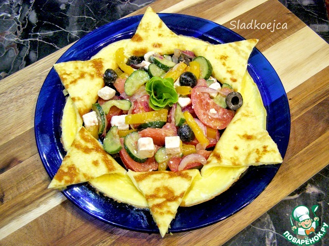Получился случайно :) Диетический салат, но подать таким образом вы можете любой другой