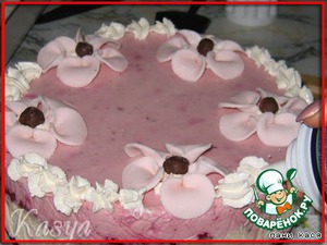 Несколько раз пекла Птичье молоко, не так сложно, как кропотливо, один раз суфле не получилось, т.к. на кухне было прохладно и желатин схватился быстрее, чем смешался. Цветочки замечательные, нежные такие и цвет очень аппетитный. Чудный тортик!!!