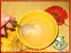 Распустили желатин и добавили 3-4 ложки творожной массы, перемешали