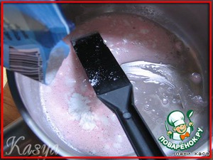 Отделила белое и розовое, добавила ложки 3-4 лимонного сока, поместила на водяную баню и мешала до растапливания зефирок