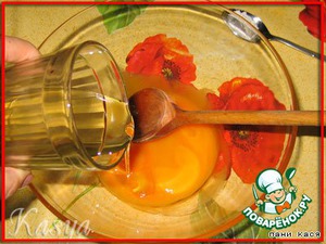 Вмешиваем муку в желтки, мешаем на низкой скорости, просто до однородности