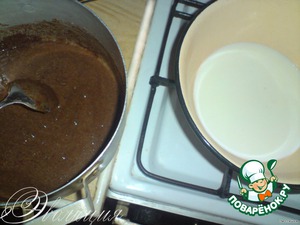 Готовим крем. Какао, муку, сахар, ванилин, корицу смешиваем и разводим в 0,5 стак. молока. |