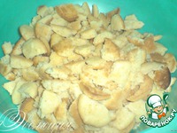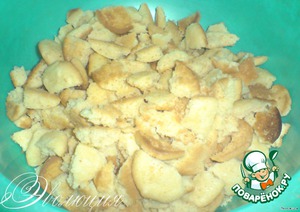 Печенье ломаем на кусочки. Заливаем кремом, перемешиваем. |
