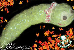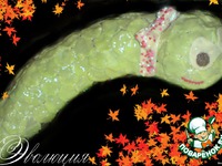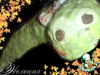 На подносе лепим из половины «теста» тело змейки. Укладываем на него мармеладки и доводим туловище до идеала (ну, или хотя бы к нему стремимся;-)) |