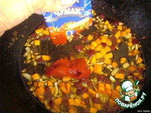 ... добавить свеклу. Когда свекла станет мягким - добавить томатную пасту,