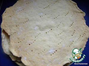 Раскатываем листы, вилкой делаем дырочки, чтобы листы не раздувались, выпекаем в духовке 5-7минут (я раскатывала на кондитерской бумаге, использую несколько раз).Из данного состава ингредиентов получается один большой торт или 2 круглых, стандартных. Я обычно делаю 2, так как съедается очень быстро, а так вроде бы продляешь удовольствие.