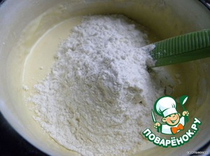 добавляем яйца, сметану, соду, гашеную, муку и замешиваем тесто.