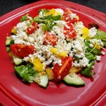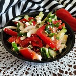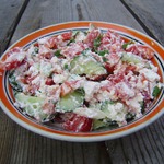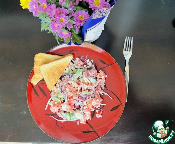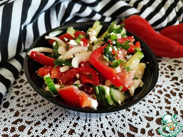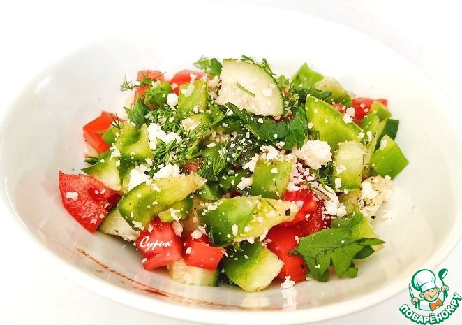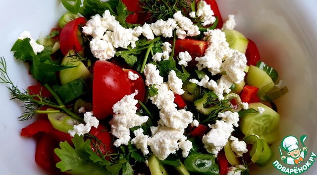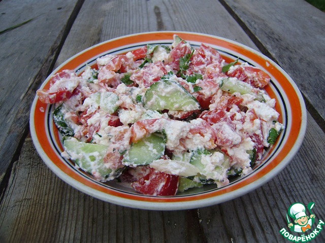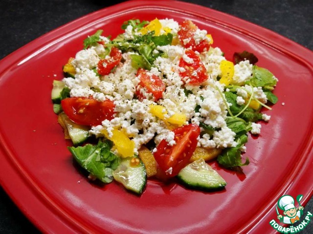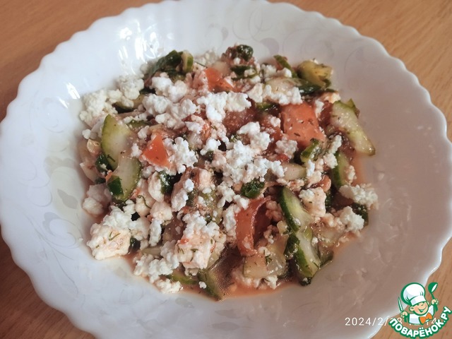 Овощной салат с творогом (брынзой)- вкусно, полезно, быстро. В сочетании с гренками - просто супер! Болгарский - потому что угостили болгары!!! За фото спасибо поваренку Хлоркина.
