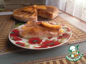 и заливаем персики и мусс желе, у меня немного все смешалось, т.к. я желатина добила в йогуртовый мусс маловато :-( В рецепте я уже все отредактировала