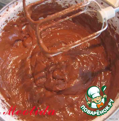 Высыпаем муку и разрыхлитель, перемешиваем хорошенько
