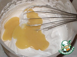 Соединить взбитые сливки и дынно-лимонный крем, перемешать до однородного состояния, перемешивать аккуратно, чтобы сливки не опали.