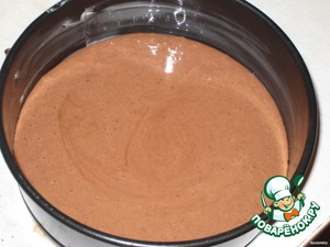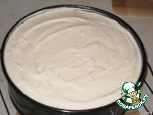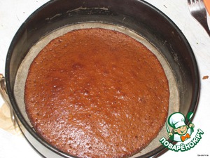 Остывший корж уложить в разъемную форму большего диаметра, которую предварительно проложить бумагой.
