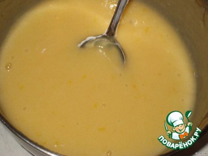 К окончанию варки 2 яйца взболтать, чтобы яичная масса стала однородной и не было прожилок отдельно белков и желтков, добавить ложку крахмала, ванилин и цедру от лимона, затем при постоянном помешивании влить тонкой струйкой горячий дыневый сироп.