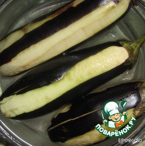 На 15 мин. поместите баклажаны в холодную подсоленную воду.