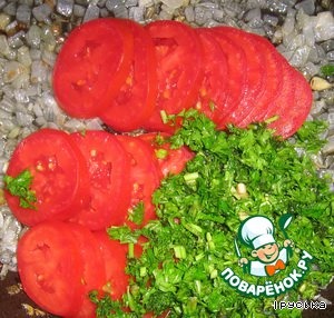 Добавьте нарезанные дольками помидоры, петрушку, соль и сахар. Все перемешайте и готовьте еще 2–3 мин.