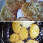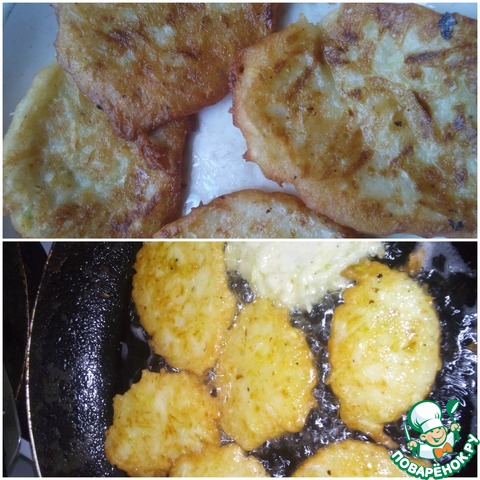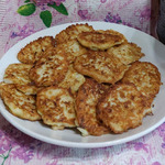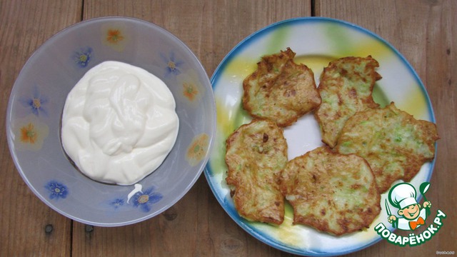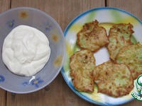 Столовой ложкой выложить на прогретую сковороду с подсолнечным маслом массу, которая у нас получилась (лучше стараться делать оладьи не очень большими (удобнее есть) и не очень толстыми (особенно, если вы добавили лук)). Обжарить с двух сторон до румяной корочки. Подавать со сметаной.