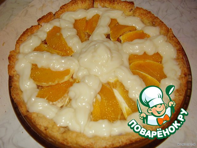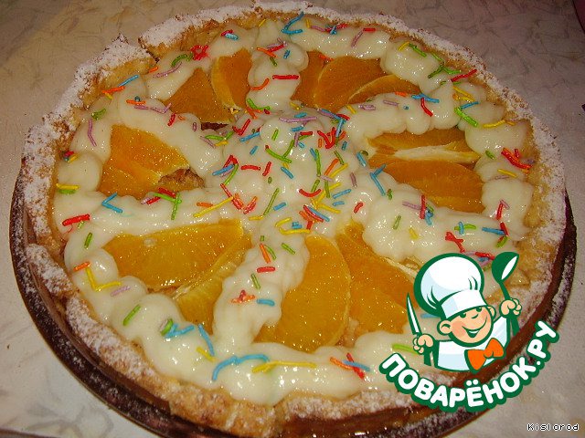 по кругу выкладываем нарезанный дольками апельсин без шкурки