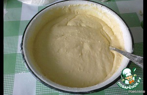 1. Замешиваем тесто: берем 0, 5 л сметаны и выливаем в чашку, добавляем в нее 1 ч. л. соды без горки (соду не гасить) и хорошо размешиваем, чтобы сметана вспенилась. Затем добавляем 1 стакан сахара, 3 яйца, ванилин и где-то 3 -4 стакана муки. Тесто должно получиться как на оладьи.