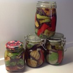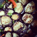 Если кому интересно: для красоты я все нарезала крупно: баклажаны вдоль на 4 части (маленькие), лук и перец крупными квадратами, морковь на самую большую терку ( для шинковки капусты) и - вуаля! внешне очень красиво, а на вкус - мммм...)))) божественно! Еще раз спасибо хозяюшке!