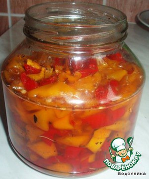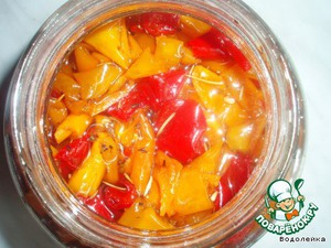 Этот рецепт я нарыла в интернете, потому что мне захотелось чего-то необычного. Этот конфит не подойдет ВСЕМ, по той самой причине, что по вкусу перец получается маринованный и сладковатый, т. е рецепт для истинных гурманов. Пробовала я его с мясом, сыром и маслом, колбасками на гриле. Мне очень понравился. Сделала на пробу я всего одну баночку. Скорее всего, этот перец можно отнести к разряду закусок.