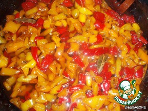 Вот так выглядит перец после 30 минут. Дальше снимаем с огня, вынимаем оттуда лаврушку и розмарин( только если он у вас веточками, если добавляли сушеный, тогда вынимать его ненужно).