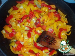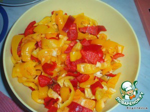 Первым делом, готовим перец. Моем его, чистим и нарезаем на полоски (не более 1см) или кубики.