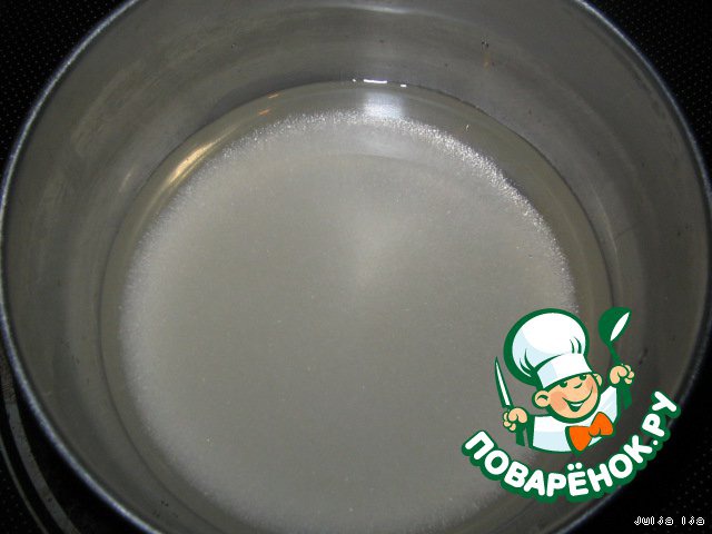 Для украшения из роз, сварить сироп из 50г. сахара и 0,5 стакана воды.