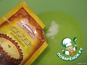 Итак. Белки отделить от желтков. Белки взбить в крепкую пену с щепоткой соли и обычным и ванильным сахаром. -