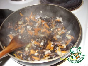 Жарим грибы с тертой морковкой и нарезанным луком + соль и перец по вкусу