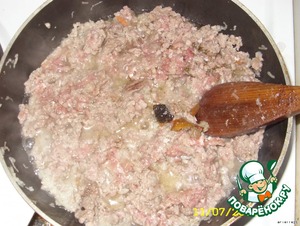 Обжариваем фарш с тертым или нарезанным луком + соль и перец по вкусу