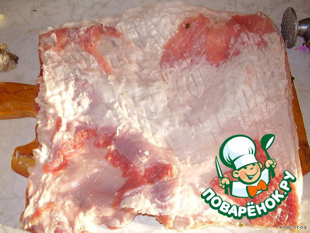 срезаем шкуру и разрезаем вдоль пополам, разворачиваем как книгу, слегка отбиваем