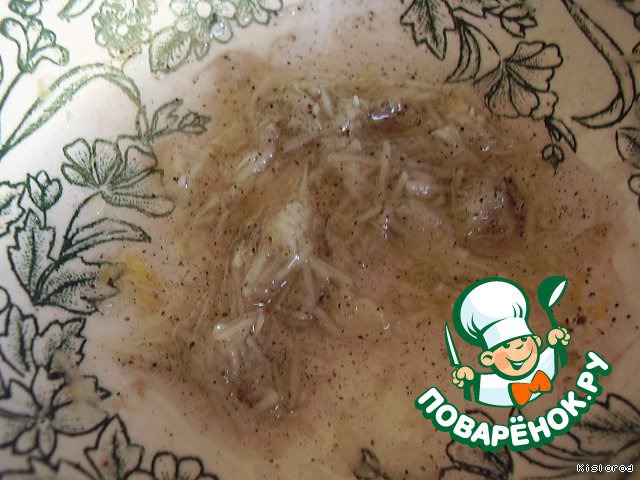 Чеснок трем на терке, добавляем соль, перец по вкусу, немного растительного масла