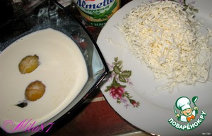 Трем на терке сыр, смешиваем яйца, сливки и творог (я творог заменила творожным сыром Альметте) -