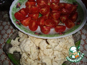 Помидоры дольками, цветную капусту разобрать на соцветия.