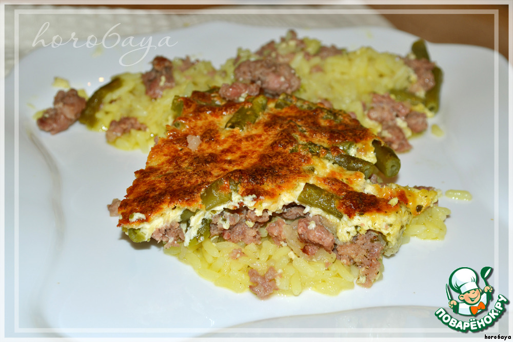 Рецепт «Сытная мясная запеканка с рисом и грибами»: