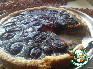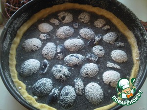 Теперь выливаем наш крем, выкладываем сверху половинки слив, посыпаем оставшейся сахарной пудрой и печем минут 30 при 180-200 градусах.