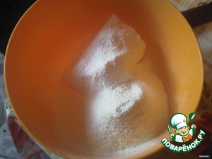 Соединяем размягченный маргарин, сахар, желтки, муку, разрыхлитель.