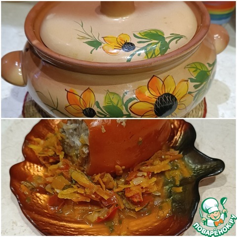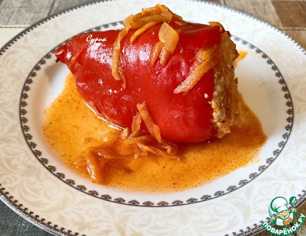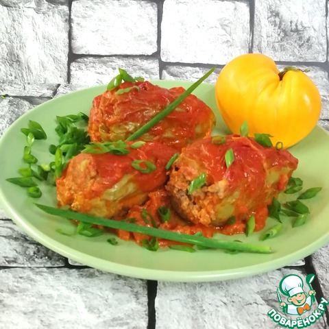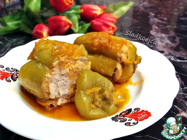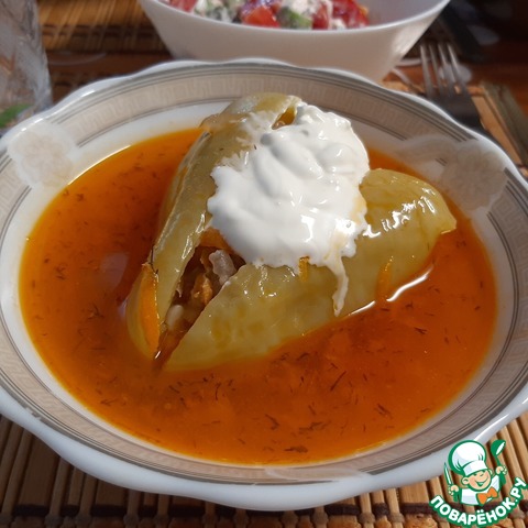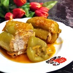 Подготовленные перцы заливаем соусом, накрываем крышкой и ставим в разогретую до 200*С духовку на 1 час.